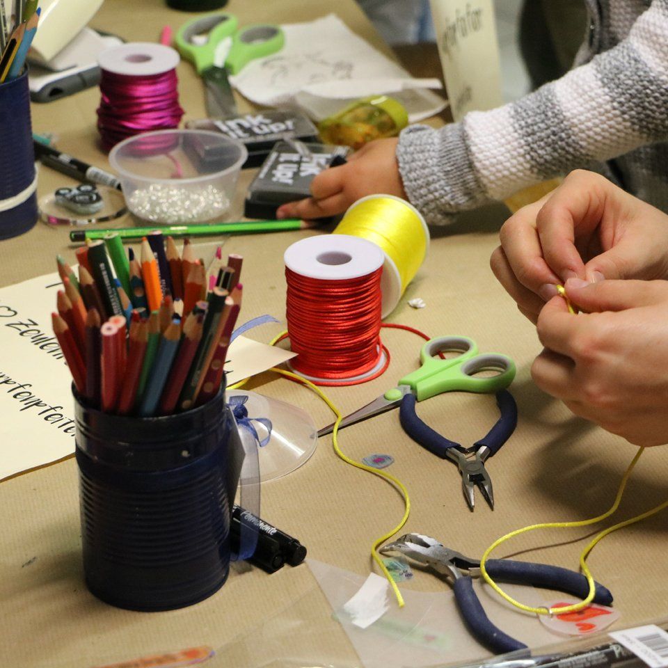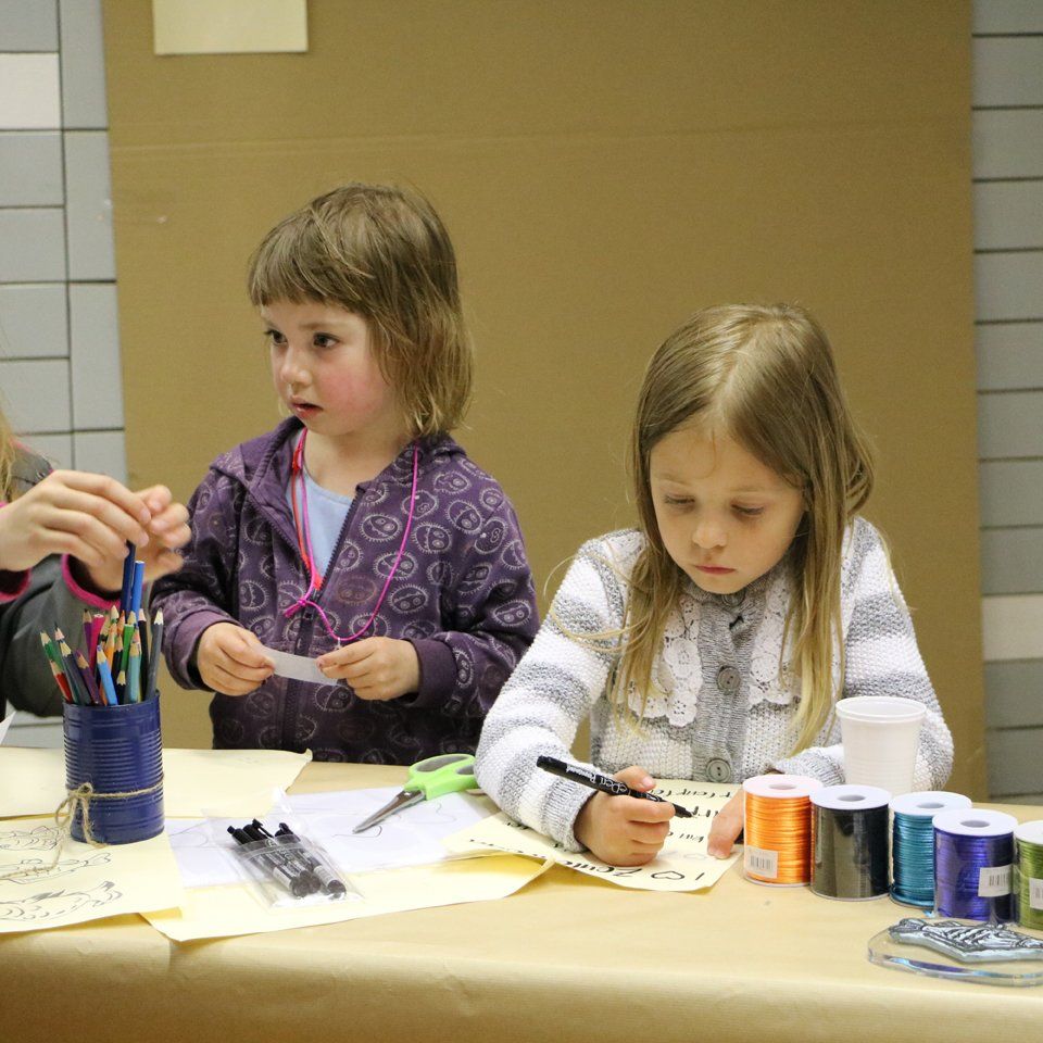 Wir bastelten einige schöne Anhänger mit Kreativfolie und unseren selbstgemachten Karpfenstempeln (dazu in einem anderen Beitrag mehr). Nicht nur Kinder, sondern auch Erwachsene gestalteten sich einmalige Schlüsselanhänger. Das faszinierende an dieser Folie ist ihr Schrumpfverhalten – viele Gäste waren erstaunt über das tolle Ergebnis nach dem Backen der Kreativfolie. Aber nicht nur wir haben gebacken, sondern auch Doreen und Silke, die an diesem Abend Panninis und Toasts zauberten und feine Torten im Schlepptau hatten.