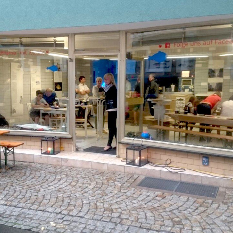 Schon den Tag zuvor haben wir begonnen die Alte Fischhansa in der Greizer Straße einzuräumen und etwas gemütlicher zu gestalten. Wir statteten sie mit Stühlen, Tischen und einer Bar aus, verziehrten die Wände mit Wissenswertes zum Thema Karpfen und präsentierten die ausgemalten Karpfen der Kindertagesstätte Frohe Zukunft. Am Freitag zogen dann noch Doreen Bergmann (Pâtiserie Bergmann) mit ein und die Band sixpack baute ihre Technik auf.