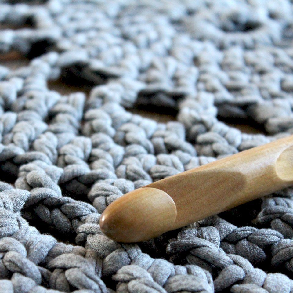 Und bei dieser schleichenden Umräumaktion kommt mein nicht beendetes Projekt von … mhhhh mal kurz überlegen … das war bestimmt schon 2015, ins Spiel. Damals wollte ich einen Poof häkeln, was mir nicht wirklich gelang. Der unfertige Poof und das Restgarn lag nun die ganze Zeit herum und fielen mir jetzt beim Aufräumen wieder in die Hände. Dabei kam mir die Idee, den leeren Raum unter dem Hochbett meiner Tochter mit einem Teppich zu füllen und gemütlicher zu gestalten. Also wurde der Poof, es war eigentlich nur ein Lappen, wieder aufgetrennt.