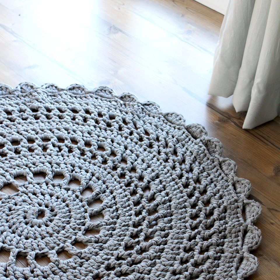 Und da ist er, schlicht durch die Farbe, verspielt durch das Deckchenmuster und groß genug für den gemütlichen Raum unter dem Hochbett. Und wieder habe ich ein Projekt erfolgreich beendet, auch wenn es 3 Jahre gedauert hat und aus einem Sitzpoof letztendlich ein Teppich wurde.