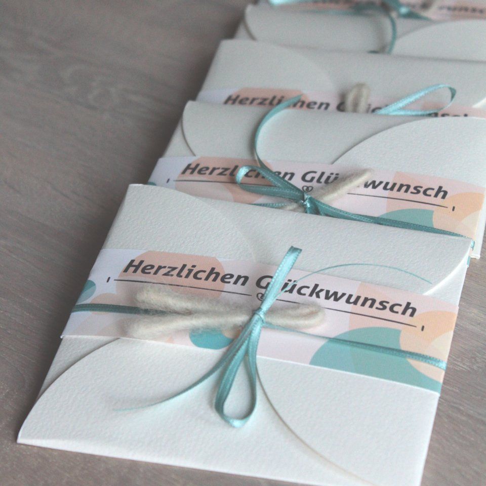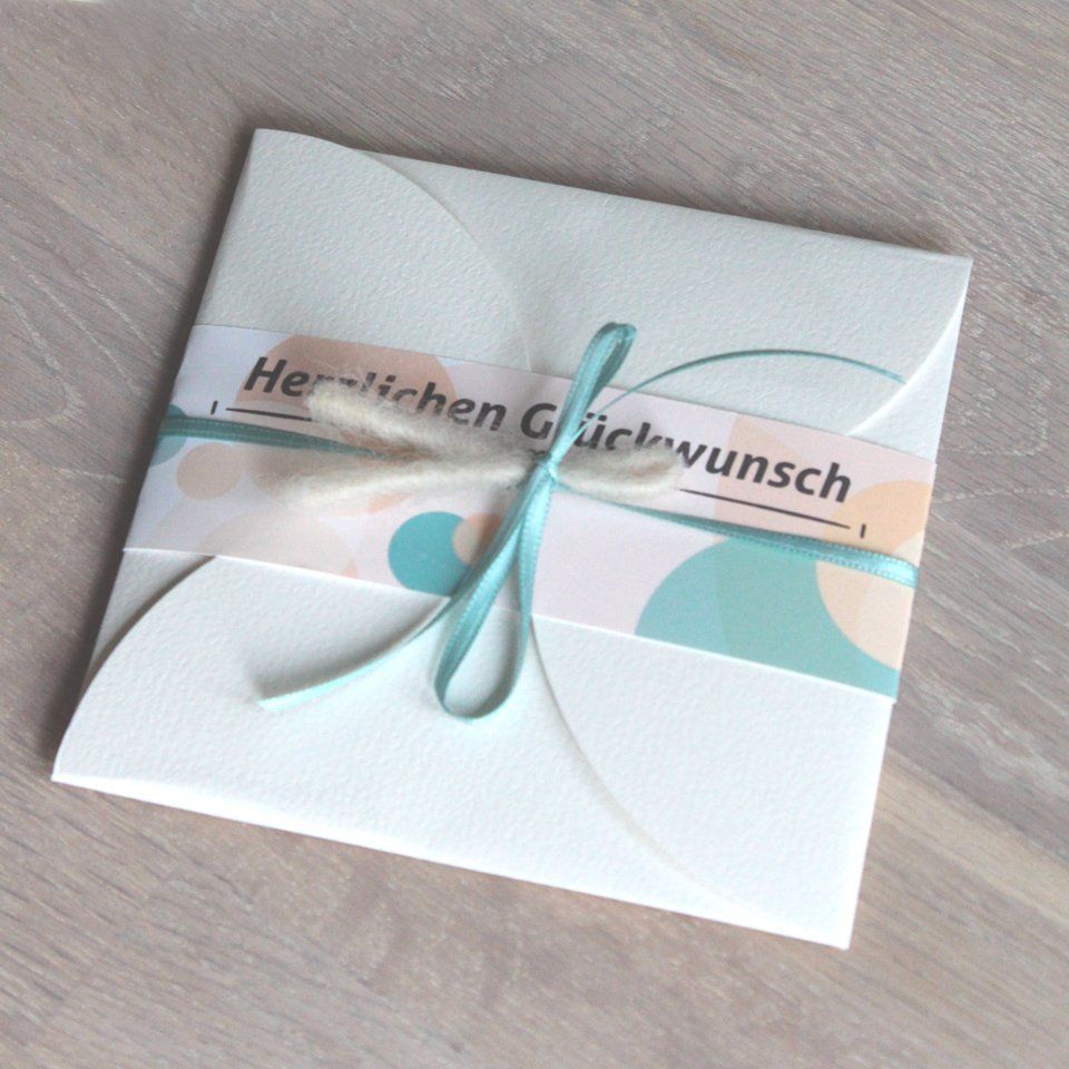Als kleines i-Tüpfelchen haben wir ein niedliches Schleifenband mit Filzschnurschleife um die Banderole gebunden – ein entzückendes Ensemble.