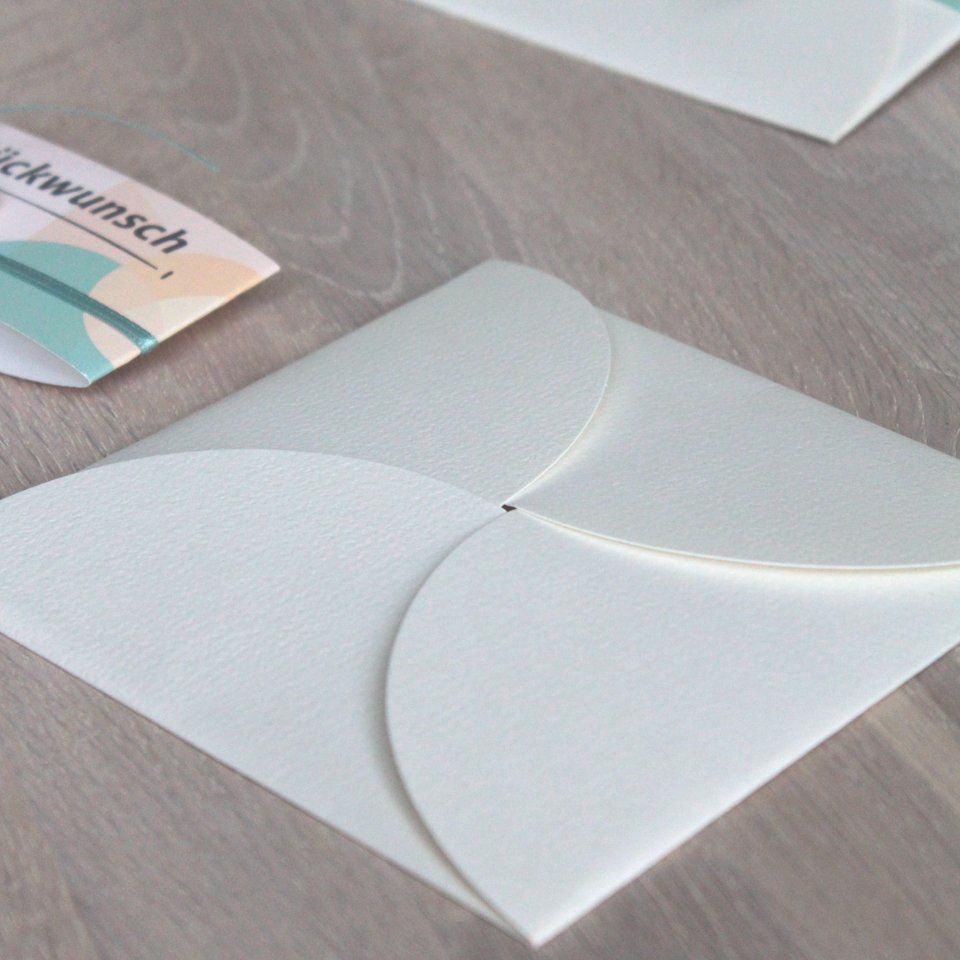 Maria Felsner bat uns einen Gutschein zu gestalten, den sie individuell beschriften kann. Passend zu ihrem Internetauftritt und Flyern fanden wir eine schöne naturfarbene Karte, die Halbkreise enthält, sich extravagant falten lässt und gleichzeitig ein Umschlag ist. Den Einleger und die Banderole entwarfen wir am Computer, auch hier durften die Kreiselemente in Apricot und Türkis nicht fehlen.