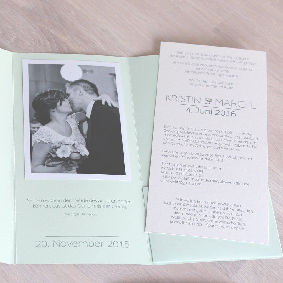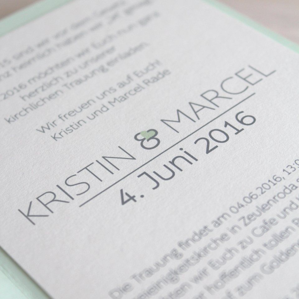 Wie ihr bestimmt schon wisst, sind wir in vielen Bereichen kreativ. So durften wir auch schon tolle Hochzeitseinladungen für Kristin und Marcel gestalten, die individuell nach den Wünschen des Brautpaares und in kleiner Stückzahl von Hand hergestellt wurden.