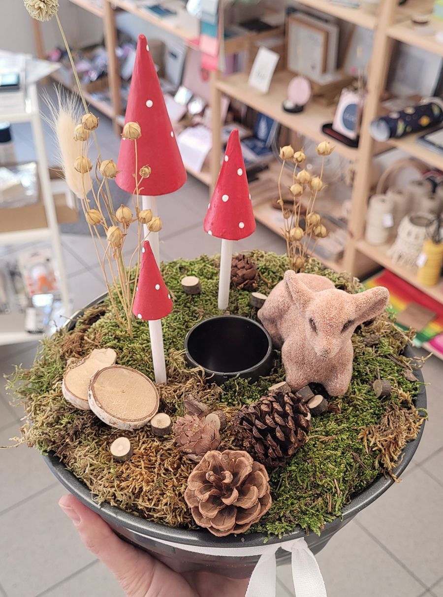 Natürlich durfte aber auch was Schönes zum Osterfest nicht fehlen. Nach einigen Überlegungen entstanden ganz tolle Blumentöpfe aus Marmeladengläsern mit einer Verkleidung aus kleinen Stöckchen, Moos und Federn, und einer Narzissenzwiebel. Eine kleine Schleife in der Mitte rundete das Ganze ab. Die Blumentöpfe könnten aber auch genauso gut als Teelichtglas genutzt werden, wenn die Pflanze verblüht ist.