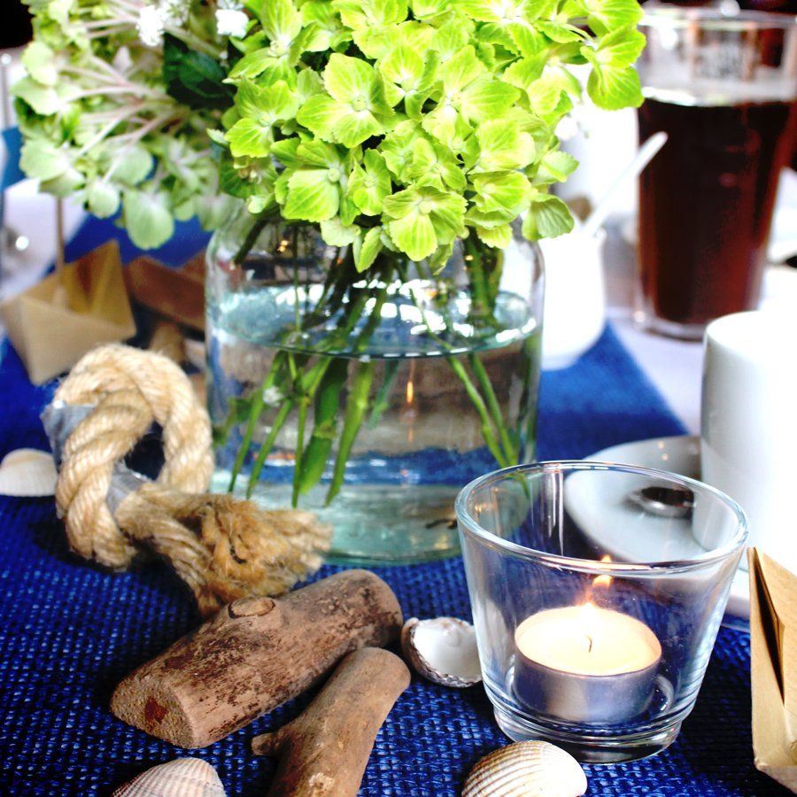 Die Zeit rennt und rennt… Dabei wollte ich euch schon die ganze Zeit von unserer tollen Tischdeko erzählen. Diese sollte, wie kann es auch anders sein, unser maritimes Motto widerspiegeln und natürlich selbst gemacht sein. Ich habe versucht, unsere Farben Rauchblau, Creme und Naturfarben wieder aufzugreifen. Ich glaube, es ist mir ganz gut gelungen