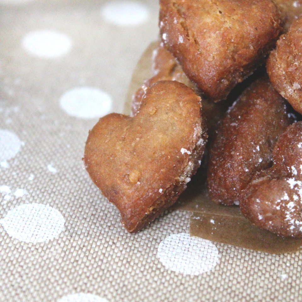 Ich habe mir nämlich gedacht ich kombiniere einfach die zwei Anlässe in einem Gebäck – Pfannkuchenherzen. Da mir normale Pfannkuchen noch nie richtig gelungen sind – das mag an meiner Vorliebe für Vollkornmehl liegen – habe ich sie einfach in Größe und Form abgewandelt. Das Ergebnis lässt sich sogar sehen. Ich sollte vorweg sagen, dass das Rezept etwas gesünder ist als andere Rezepte und damit auch anders schmeckt als ein beim Bäcker gekaufter Pfannkuchen. Das heißt statt Weizenmehl verwende ich Weizenvollkornmehl und Haferflocken und statt viel Zucker nur wenig Vollrohrzucker. Aber mit einer Prise Puderzucker oder Marmelade schmecken die kleinen Pfannkuchenherzen sogar meinen Kindern.