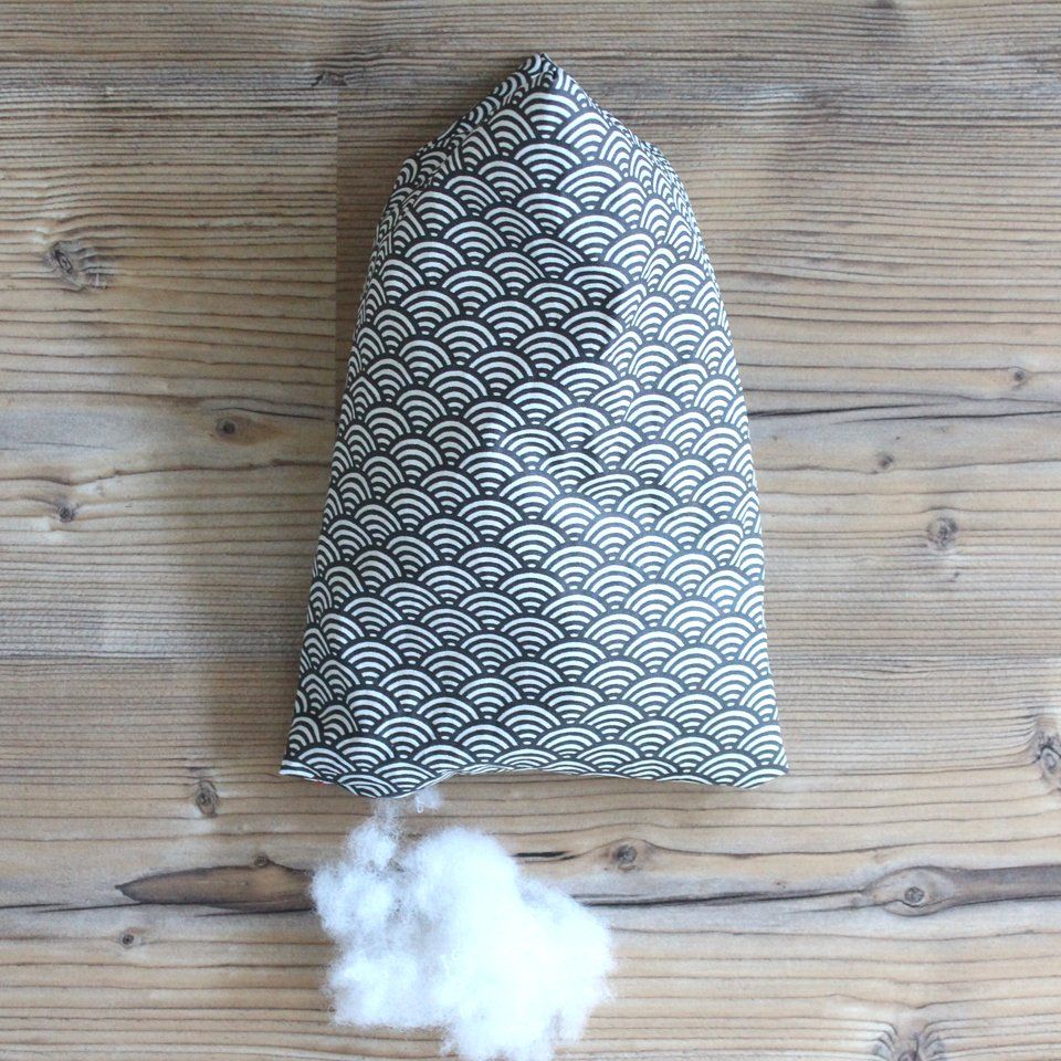 Wir haben Styroporkügelchen benutzt aber es gehen bestimmt auch andere Materialien. Zum Einfüllen haben wir uns einen Papiertrichter geformt, damit nicht alles daneben geht. Die Styroporkugeln kleben durch ihre statische Aufladung eh schon überall. Leider können wir euch nicht sagen, wie viel Liter wir an Styroporkügelchen verwendet haben, da es ein „Rest“ eines anderen Projektes war. Ist das Sitzkissen gefüllt, näht man die noch offene Stelle zu. Unsichtbar per Hand oder schnell mit der Nähmaschine. Wie ihr mögt.