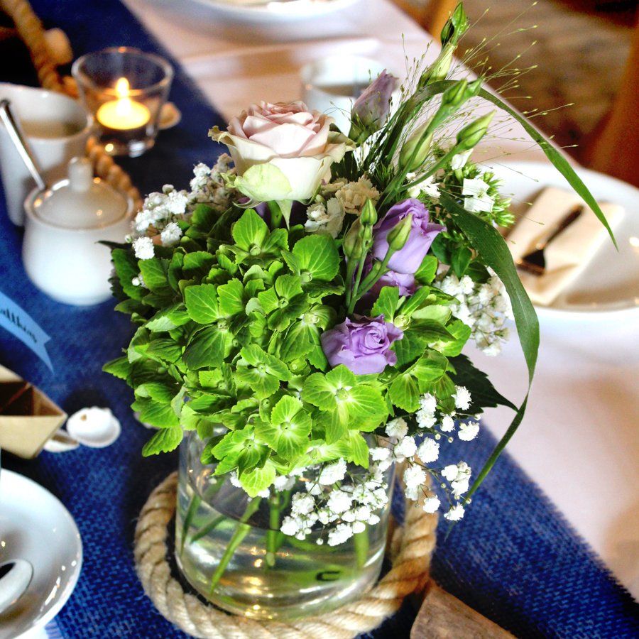Alles zusammen gab ein richtig schönes stimmiges Bild und eine lockerleichte maritime Sommertischdeko mit einem kleinen Vintagetouch durch die tollen Blumensträuße. Aber schaut euch selbst die Fotos an.